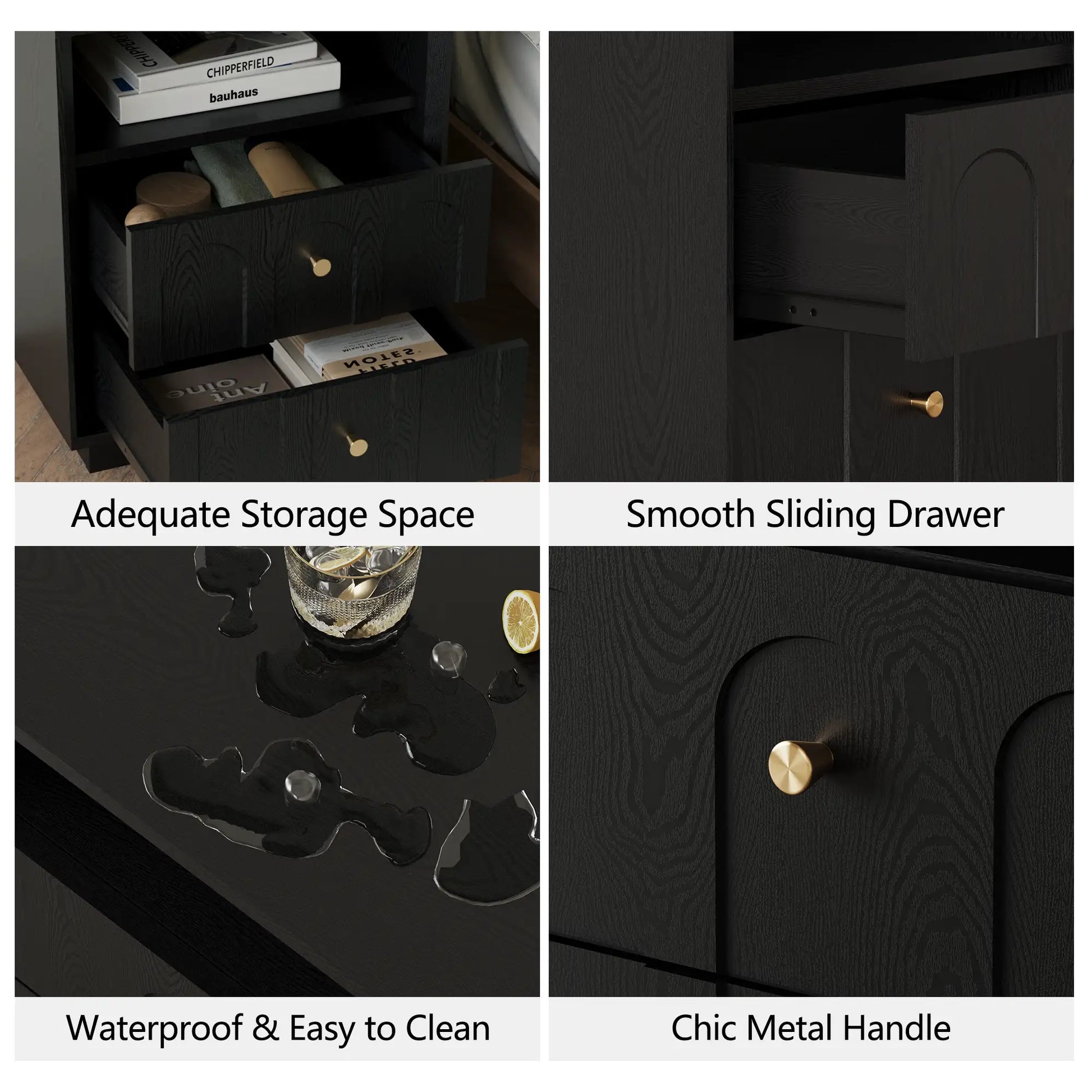 Mid-Century Black Wood Arch Nightstand with Drawers | Fortunetec